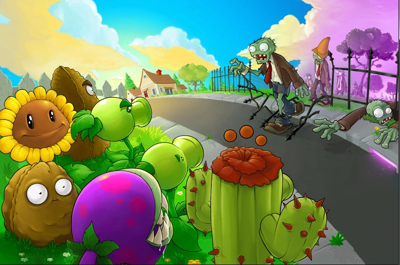 Pflanzen gegen Zombies, auch Plants vs. Zombies ist eine Tower Defense und Strategie Spielreihe für unzählige Plattformen, in dem der Spieler sein Haus (und sein Gehirn) mit Hilfe verschiedener Pflanzen gegen angreifende Zombies verteidigen muss.