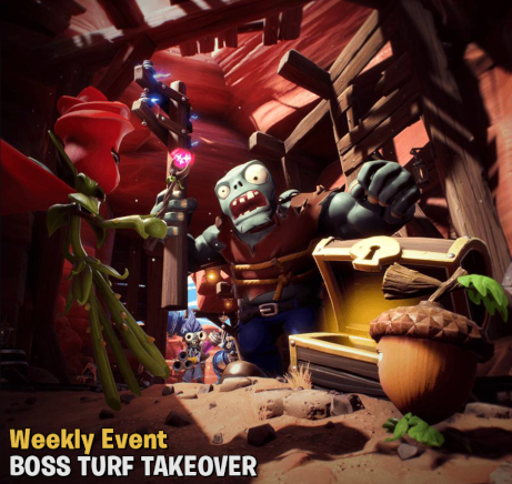 Boss Turf Takeover is a Weekly Event game mode in Plants vs. Zombies: Battle for Neighborville. It is a variant of Turf Takeover where boss chests will spawn over time, which will summon a boss when it is opened.