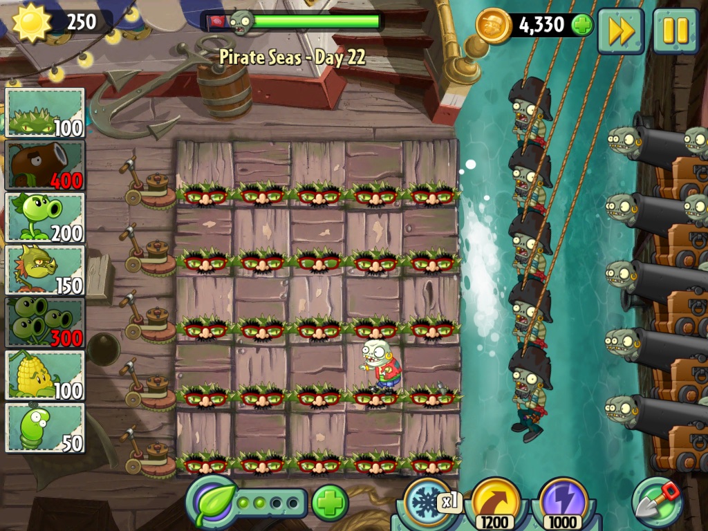 Similar to I, Zombie from Plants vs. Zombies, there are plants on the lawn which need to be destroyed in order to beat the level. The player must spawn zombies to eat the plants. Every eaten plant is worth 150 sun.