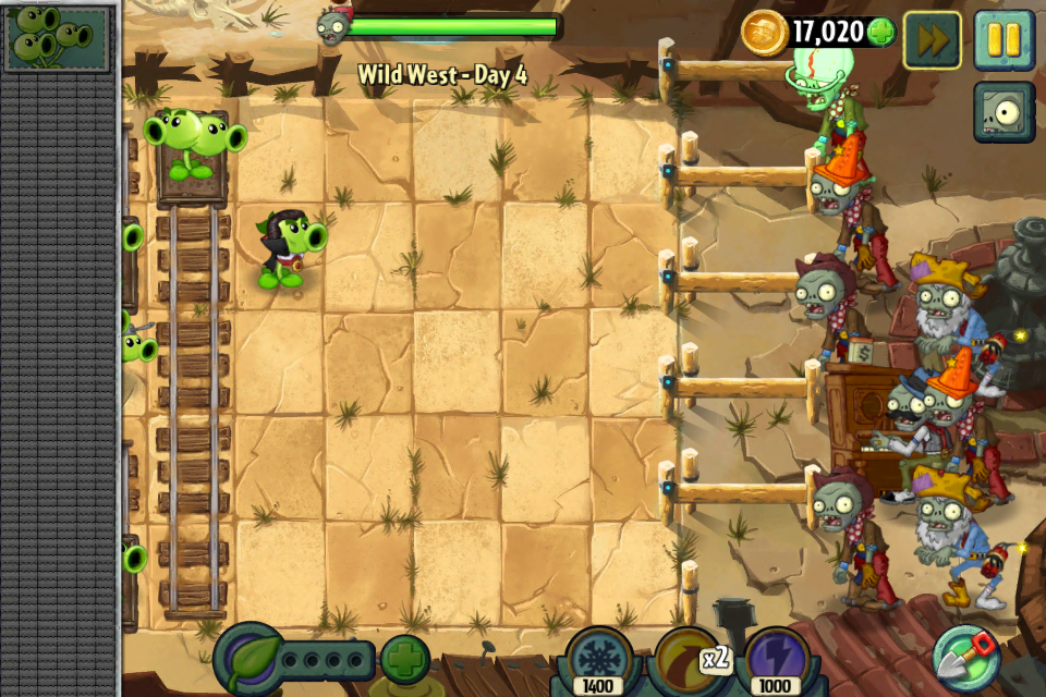 The player has to put the plants in the minecarts strategically to destroy the zombies coming out from the corrals. Corrals with electricity indicate that no zombies are to come from that corral for the wave.