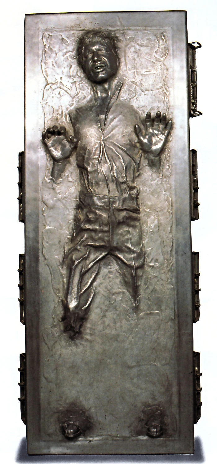 It is based on Han Solo, a character from the Star Wars series, more specifically, the moment Han Solo is frozen in carbonite in The Empire Strikes Back, a Star Wars series movie directed by George Lucas, and a bean, a common name for large seeds of several genera of the flowering plant family Fabaceae.