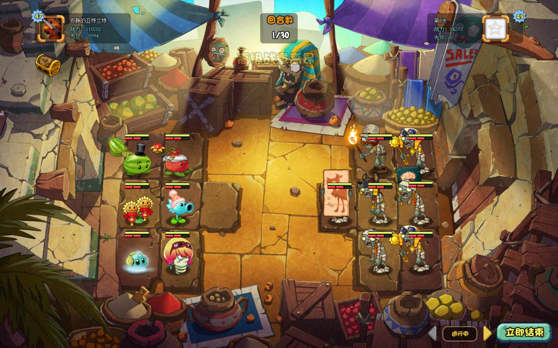 This article is about content available solely in the People's Republic of China. This article is under construction and requires more content. You can help our wiki out by expanding it! Egyptian Market - Day 8 was the eighth level in the Elite version of Egyptian Market in the Adventure Mode of Plants vs. Zombies Online. Difficulty[]