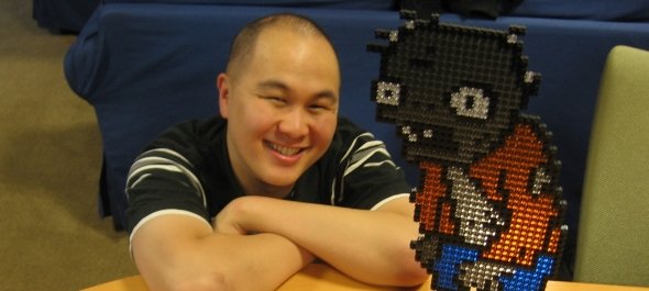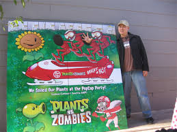 George Fan standing beside a Plants vs. Zombies poster