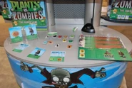 Plants vs Zombies: The Board Game is a board game version of the popular video game Plants vs. Zombies by PopCap Games. In the game, dice are rolled, which places zombies in players' yards. Player can then respond by playing plant cards to remove zombies from their board or by playing cards, which make it harder for opponents to manage the zombies on their respective boards. The goal is to keep the zombies from entering your house.