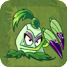 She is a melee plant like Bonk Choy who repeatedly hits all targets two tiles ahead of her (slows zombies for 2 seconds). After each attack, she stabs an additional time for future combos until the fourth, whereupon she launches a penetrating spike (slows zombies for 3 seconds) and rests for 3 more seconds before resuming her attack cycle.
