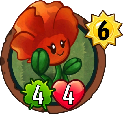 With 4/4 for 6 sun, Poppin' Poppies isn't very much herself. Instead, her ability is arguably the more powerful part of her, allowing her to function as a good defensive card. You can stall the zombies to give your plants an extra turn to attack freely, protect yourself when there are many vulnerable spots in your defenses or set up some defenses to pressure your opponent when the field is empty.