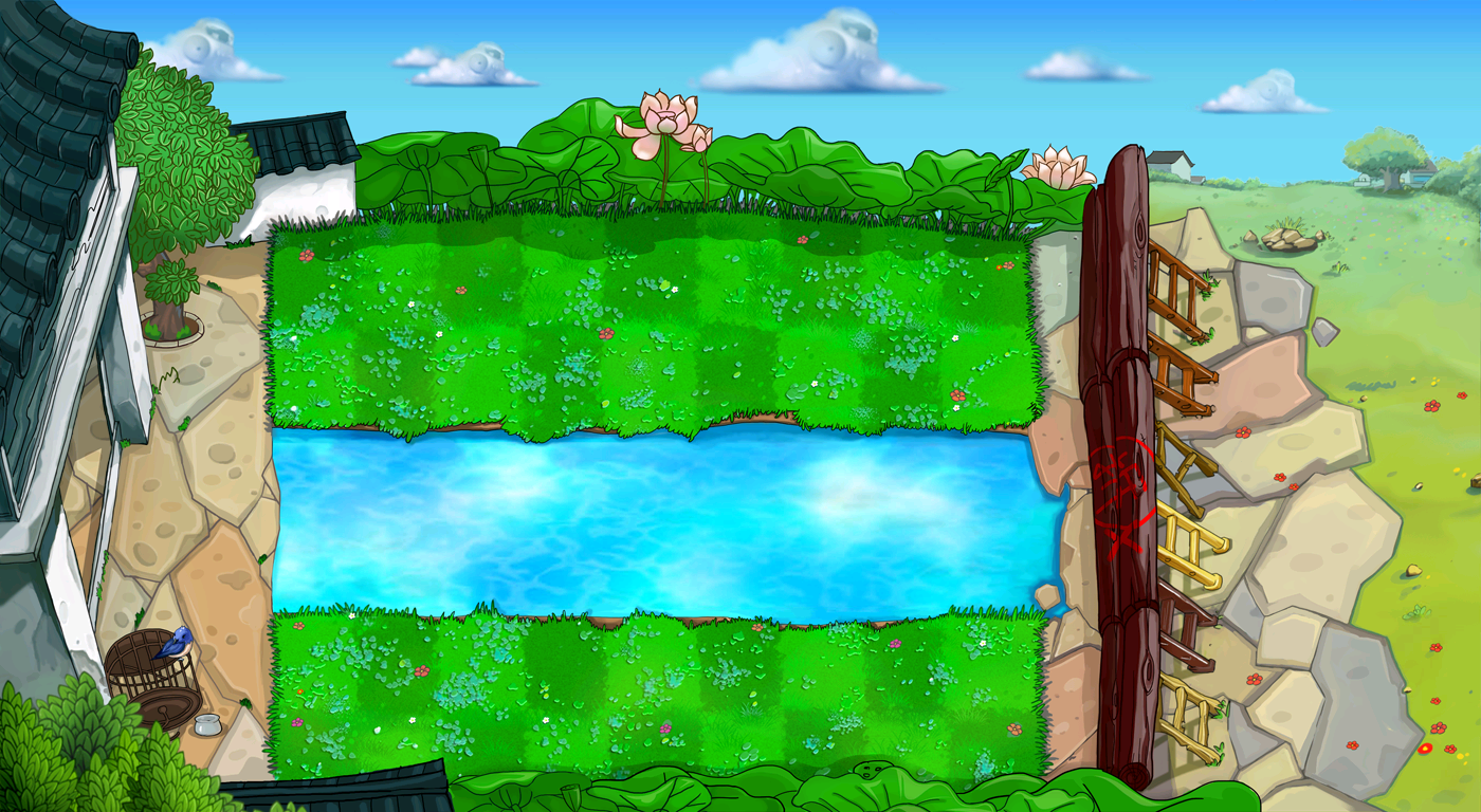 Rural Backyard (农家后院; pinyin: Nóngjiā Hòuyuàn) is a Survival Mode-exclusive area in Plants vs. Zombies: Great Wall Edition. It is the backyard of a rural house, but unlike the front lawn (where the day and night stages take place) there are six rows on the lawn instead of five. The middle two rows are the pool, which requires the player to plant Lily Pads before most other plants.