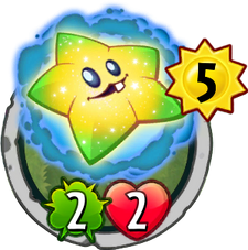 Shooting Starfruit is a galacticlegendaryplantcard in Plants vs. Zombies Heroes and a member of the Smarty class. It costs 5 to play and has 2/2. It does not have any traits, and its ability allows it to attack on all five lanes.