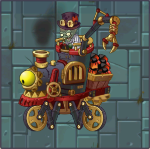 Steam Zombot is the boss of Steam Age in the Chinese version of Plants vs. Zombies 2. It is battled in Steam Age - Ultimate Challenge. It takes up a two-by-two area at the right side of the lawn, jumping to different rows occasionally. It can send out zombies in two rows at a time, and it can only be attacked in the two rows it occupies at any one time.