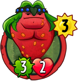 Strawberrian's normal ability doesn't do that much damage, but it is handy against glass cannons or if there are zombies next to Strawberrian. It also provides offensive support for your other plants. This gets even more dangerous when paired with High-Voltage Currant, Pair Pearadise or Sergeant Strongberry. High-Voltage Currant gets +1 per zombie damaged, allowing them to hit even harder. Pair Pearadise doubles the berries played, which in turn doubles the damage done by Strawberrian. And finally, Sergeant Strongberry does 2 damage to the ones right after Strawberrian does damage, resulting in 3 damage to each of the two zombies per berry played. His ability bypassing Untrickable is also a bonus.
