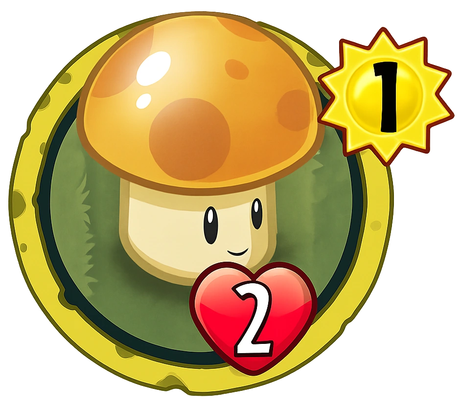 In the original Plants vs. Zombies game, as well as all Chinese spin-off games, Sun-shroom is unlocked after beating Level 2-1. He is a mushroom alternative to Sunflower, being 25 sun cheaper and initially producing fewer sun. He is meant to be used in Night and Fog levels due to his cheaper cost and sleeps in the day unless waken up by a Coffee Bean.