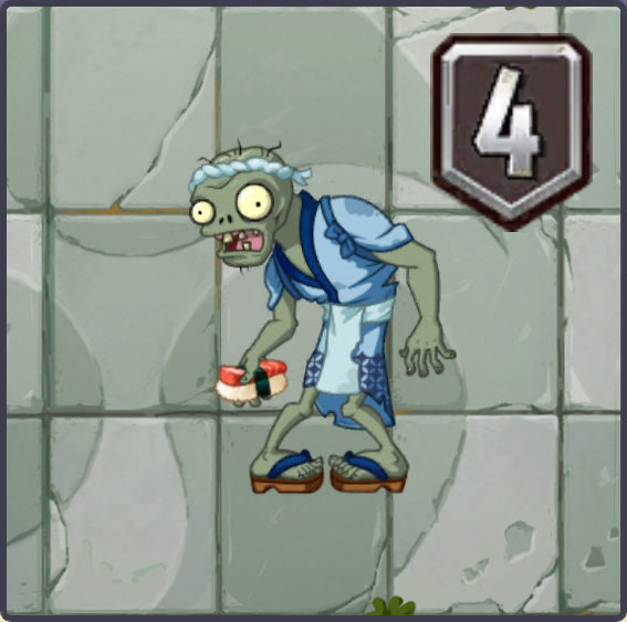 Sushi Chef Zombie isn't that tough to deal with, but the difficulty will be increased if there are multiple Sushi Chef Zombies. Using Primal Peashooter is a good choice to push back the zombies if they are boosted by the sushi. Combining it with ice-based plants like Snow Pea will be a very great defense to deal with boosted zombies.