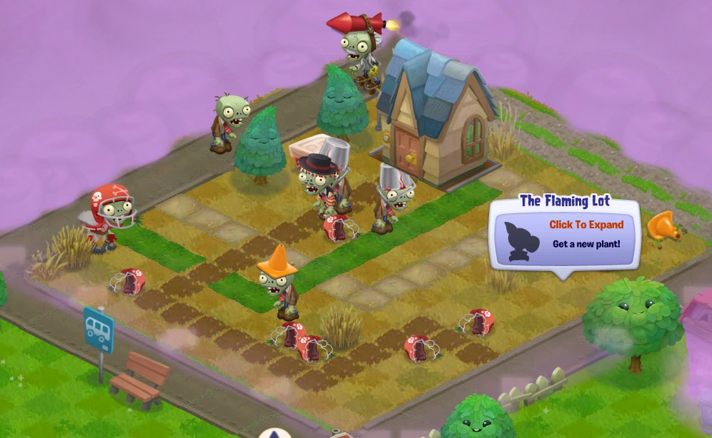 The Flaming Lot was a place, and one of the lots, in Plants vs. Zombies Adventures. The player unlocked this after completing U of Z, using the Broken Taco Truck and 30,000 coins. If the player reclaimed it from the zombies, they would get Flaming Pea.