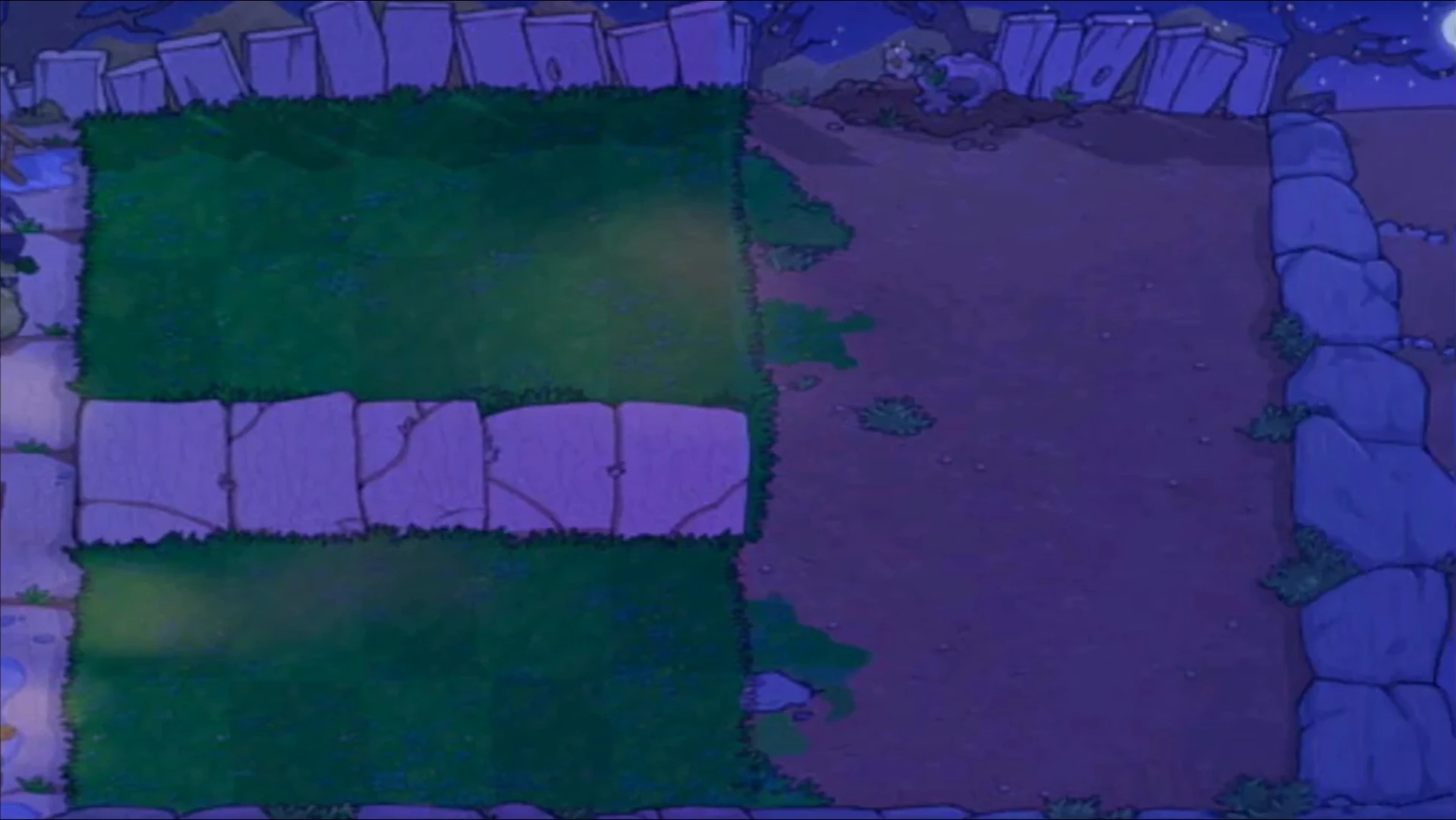 This area was similar to Night as mushrooms were awake and no sun fell from the sky. However unlike Night, there were no graves and only the first five columns of the lawn were muddied and could not be planted on, with the middle row requiring Flower Pots to be planted on.