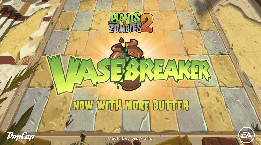 Vasebreaker is the first (and so far the only) mini-game in Plants vs. Zombies 2. It was added in the 2.7.1 update, and six new Vasebreaker levels were added in the 3.4.4 update. Vasebreaker involves breaking open vases to reveal its hidden contents that can be helpful or harmful to the player. The objective remains the same: to build a defense to defeat the zombies, albeit carefully as the vases are randomized.