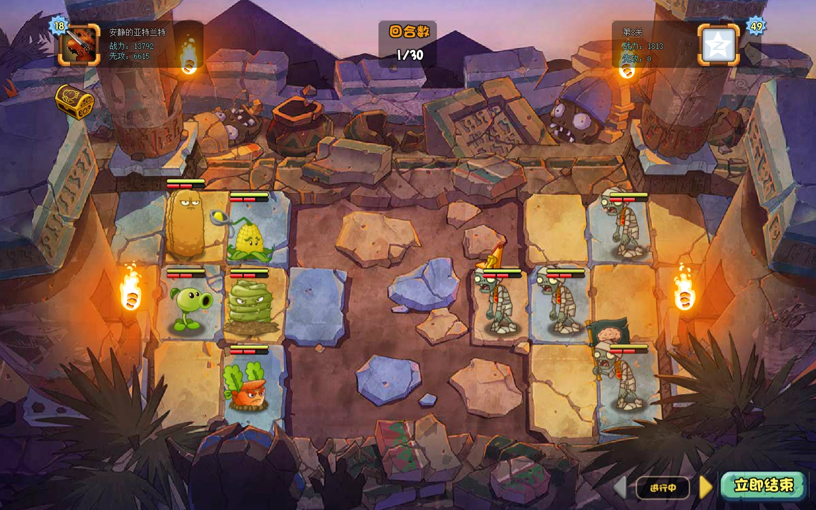 Just like the previous level, with many high health plants, the player can beat all of the zombies easily.
